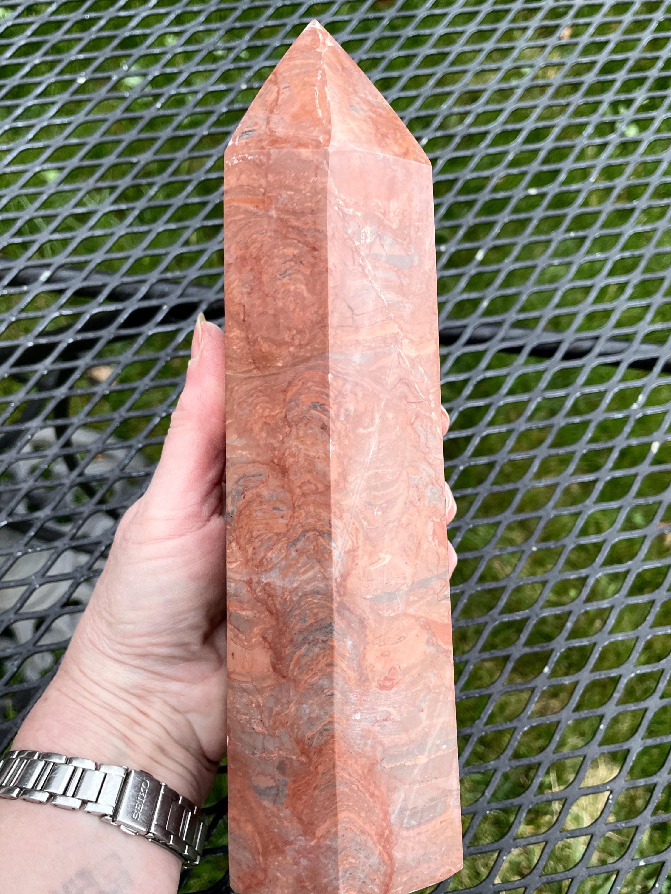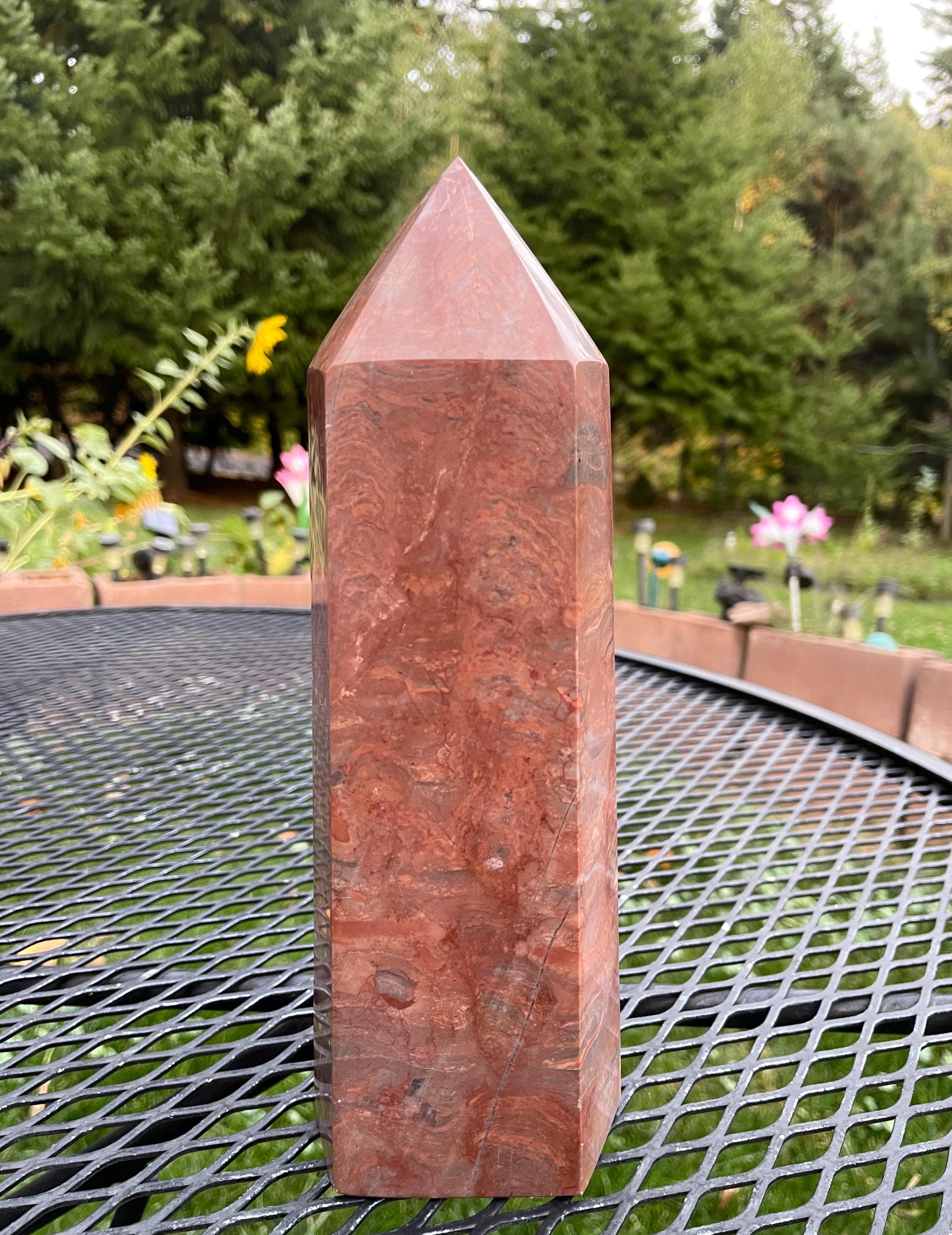 Large Red Jasper obelisk pillar tower point wand column generator mineral display specimen.